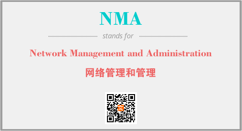 英文缩略词“NMA”经常作为“Network Management and Administration”的英文缩写来使用,中文表示:“网络管理和管理”。本文将详细介绍英文缩写词NMA所代表英文单词,其对应的中文拼音、详细解释以及在英语中的流行度。此外,还有关于缩略词NMA的分类、应用领域及相关应用示例等。