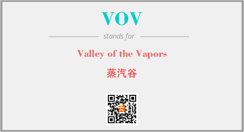 上述内容是“Valley of the Vapors”作为“VOV”的缩写,解释为“蒸汽谷”时的信息,以及英文缩略词VOV所代表的英文单词,其对应的中文拼音、详细解释以及在英文中的流行度和相关分类、应用领域及应用示例等。