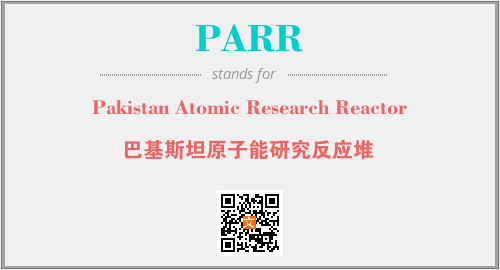 上述内容是“Pakistan Atomic Research Reactor”作为“PARR”的缩写,解释为“巴基斯坦原子能研究反应堆”时的信息,以及英文缩略词PARR所代表的英文单词,其对应的中文拼音、详细解释以及在英文中的流行度和相关分类、应用领域及应用示例等。