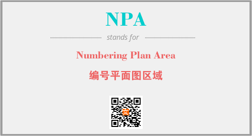英文缩略词“NPA”经常作为“Numbering Plan Area”的英文缩写来使用,中文表示:“编号平面图区域”。本文将详细介绍英文缩写词NPA所代表英文单词,其对应的中文拼音、详细解释以及在英语中的流行度。此外,还有关于缩略词NPA的分类、应用领域及相关应用示例等。