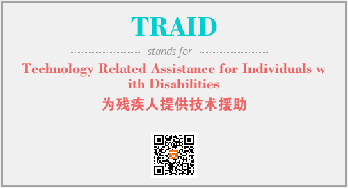 以上为Technology Related Assistance for Individuals with Disabilities英文缩略词TRAID的中文解释,以及该英文缩写在英语的流行度、分类和应用领域方面的信息。