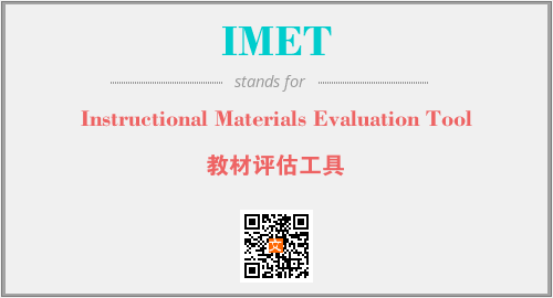 英文缩略词“IMET”经常作为“Instructional Materials Evaluation Tool”的英文缩写来使用,中文表示:“教材评估工具”。本文将详细介绍英文缩写词IMET所代表英文单词,其对应的中文拼音、详细解释以及在英语中的流行度。此外,还有关于缩略词IMET的分类、应用领域及相关应用示例等。