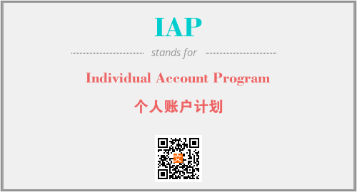 上述内容是“Individual Account Program”作为“IAP”的缩写,解释为“个人账户计划”时的信息,以及英文缩略词IAP所代表的英文单词,其对应的中文拼音、详细解释以及在英文中的流行度和相关分类、应用领域及应用示例等。