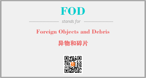 英文缩略词“FOD”经常作为“Foreign Objects and Debris”的英文缩写来使用,中文表示:“异物和碎片”。本文将详细介绍英文缩写词FOD所代表英文单词,其对应的中文拼音、详细解释以及在英语中的流行度。此外,还有关于缩略词FOD的分类、应用领域及相关应用示例等。