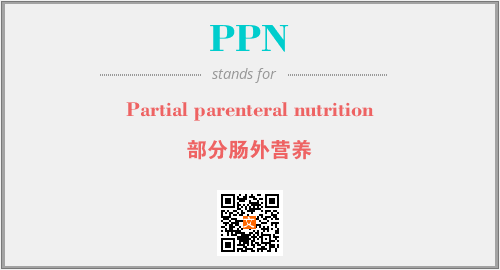 上述内容是“Partial parenteral nutrition”作为“PPN”的缩写,解释为“部分肠外营养”时的信息,以及英文缩略词PPN所代表的英文单词,其对应的中文拼音、详细解释以及在英文中的流行度和相关分类、应用领域及应用示例等。
