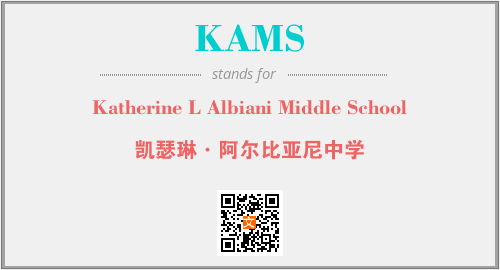 上述内容是“Katherine L Albiani Middle School”作为“KAMS”的缩写,解释为“凯瑟琳·阿尔比亚尼中学”时的信息,以及英文缩略词KAMS所代表的英文单词,其对应的中文拼音、详细解释以及在英文中的流行度和相关分类、应用领域及应用示例等。
