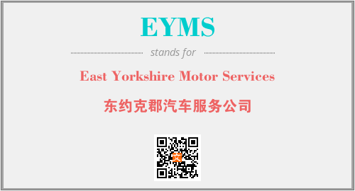 上述内容是“East Yorkshire Motor Services”作为“EYMS”的缩写,解释为“东约克郡汽车服务公司”时的信息,以及英文缩略词EYMS所代表的英文单词,其对应的中文拼音、详细解释以及在英文中的流行度和相关分类、应用领域及应用示例等。