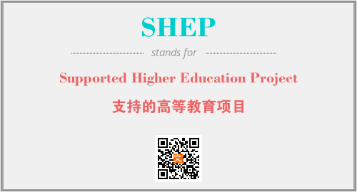 上述内容是“Supported Higher Education Project”作为“SHEP”的缩写,解释为“支持的高等教育项目”时的信息,以及英文缩略词SHEP所代表的英文单词,其对应的中文拼音、详细解释以及在英文中的流行度和相关分类、应用领域及应用示例等。