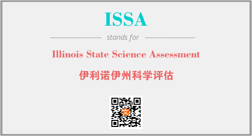 英文缩略词“ISSA”经常作为“Illinois State Science Assessment”的英文缩写来使用,中文表示:“伊利诺伊州科学评估”。本文将详细介绍英文缩写词ISSA所代表英文单词,其对应的中文拼音、详细解释以及在英语中的流行度。此外,还有关于缩略词ISSA的分类、应用领域及相关应用示例等。