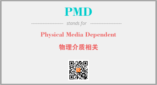 上述内容是“Physical Media Dependent”作为“PMD”的缩写,解释为“物理介质相关”时的信息,以及英文缩略词PMD所代表的英文单词,其对应的中文拼音、详细解释以及在英文中的流行度和相关分类、应用领域及应用示例等。