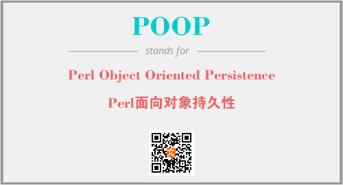 上述内容是“Perl Object Oriented Persistence”作为“POOP”的缩写,解释为“Perl面向对象持久性”时的信息,以及英文缩略词POOP所代表的英文单词,其对应的中文拼音、详细解释以及在英文中的流行度和相关分类、应用领域及应用示例等。