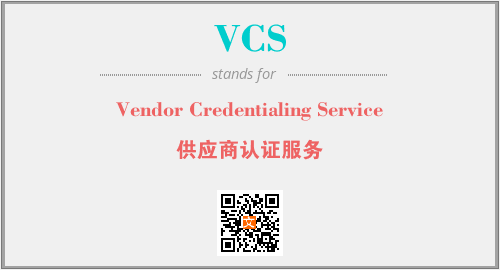 上述内容是“Vendor Credentialing Service”作为“VCS”的缩写,解释为“供应商认证服务”时的信息,以及英文缩略词VCS所代表的英文单词,其对应的中文拼音、详细解释以及在英文中的流行度和相关分类、应用领域及应用示例等。