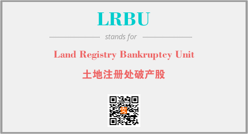 上述内容是“Land Registry Bankruptcy Unit”作为“LRBU”的缩写,解释为“土地注册处破产股”时的信息,以及英文缩略词LRBU所代表的英文单词,其对应的中文拼音、详细解释以及在英文中的流行度和相关分类、应用领域及应用示例等。