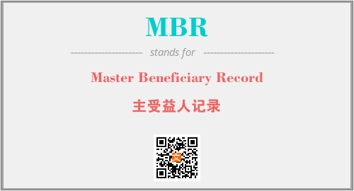 英文缩略词“MBR”经常作为“Master Beneficiary Record”的英文缩写来使用,中文表示:“主受益人记录”。本文将详细介绍英文缩写词MBR所代表英文单词,其对应的中文拼音、详细解释以及在英语中的流行度。此外,还有关于缩略词MBR的分类、应用领域及相关应用示例等。