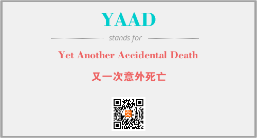 上述内容是“Yet Another Accidental Death”作为“YAAD”的缩写,解释为“又一次意外死亡”时的信息,以及英文缩略词YAAD所代表的英文单词,其对应的中文拼音、详细解释以及在英文中的流行度和相关分类、应用领域及应用示例等。