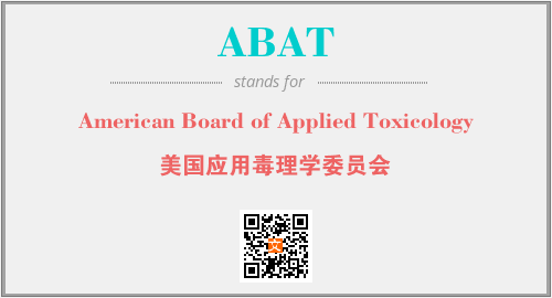 英文缩略词“ABAT”经常作为“American Board of Applied Toxicology”的英文缩写来使用,中文表示:“美国应用毒理学委员会”。本文将详细介绍英文缩写词ABAT所代表英文单词,其对应的中文拼音、详细解释以及在英语中的流行度。此外,还有关于缩略词ABAT的分类、应用领域及相关应用示例等。