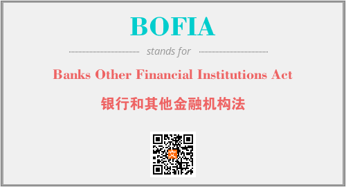 上述内容是“Banks Other Financial Institutions Act”作为“BOFIA”的缩写,解释为“银行和其他金融机构法”时的信息,以及英文缩略词BOFIA所代表的英文单词,其对应的中文拼音、详细解释以及在英文中的流行度和相关分类、应用领域及应用示例等。