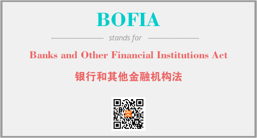 上述内容是“Banks and Other Financial Institutions Act”作为“BOFIA”的缩写,解释为“银行和其他金融机构法”时的信息,以及英文缩略词BOFIA所代表的英文单词,其对应的中文拼音、详细解释以及在英文中的流行度和相关分类、应用领域及应用示例等。