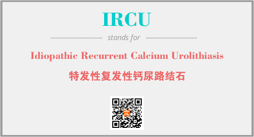 上述内容是“Idiopathic Recurrent Calcium Urolithiasis”作为“IRCU”的缩写,解释为“特发性复发性钙尿路结石”时的信息,以及英文缩略词IRCU所代表的英文单词,其对应的中文拼音、详细解释以及在英文中的流行度和相关分类、应用领域及应用示例等。