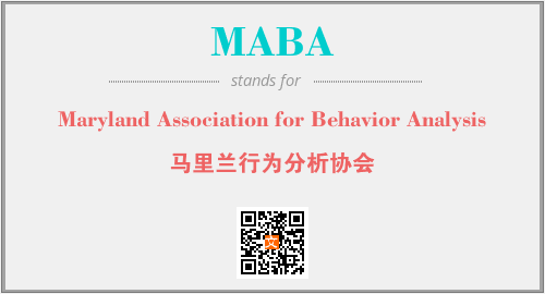 上述内容是“Maryland Association for Behavior Analysis”作为“MABA”的缩写,解释为“马里兰行为分析协会”时的信息,以及英文缩略词MABA所代表的英文单词,其对应的中文拼音、详细解释以及在英文中的流行度和相关分类、应用领域及应用示例等。