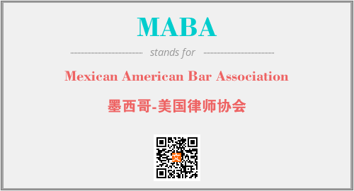 以上为Mexican American Bar Association英文缩略词MABA的中文解释,以及该英文缩写在英语的流行度、分类和应用领域方面的信息。