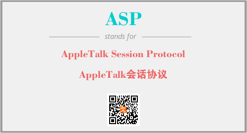 英文缩略词“ASP”经常作为“AppleTalk Session Protocol”的英文缩写来使用,中文表示:“AppleTalk会话协议”。本文将详细介绍英文缩写词ASP所代表英文单词,其对应的中文拼音、详细解释以及在英语中的流行度。此外,还有关于缩略词ASP的分类、应用领域及相关应用示例等。