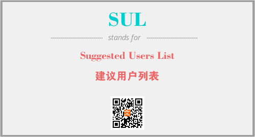 上述内容是“Suggested Users List”作为“SUL”的缩写,解释为“建议用户列表”时的信息,以及英文缩略词SUL所代表的英文单词,其对应的中文拼音、详细解释以及在英文中的流行度和相关分类、应用领域及应用示例等。