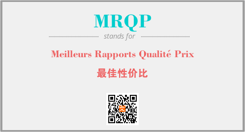 以上为Meilleurs Rapports Qualité Prix英文缩略词MRQP的中文解释,以及该英文缩写在英语的流行度、分类和应用领域方面的信息。