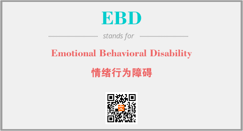 英文缩略词“EBD”经常作为“Emotional Behavioral Disability”的英文缩写来使用,中文表示:“情绪行为障碍”。本文将详细介绍英文缩写词EBD所代表英文单词,其对应的中文拼音、详细解释以及在英语中的流行度。此外,还有关于缩略词EBD的分类、应用领域及相关应用示例等。