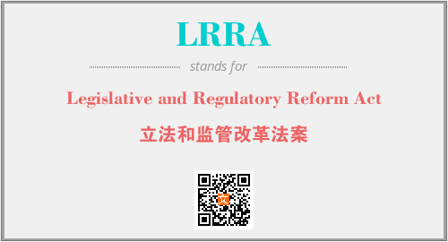 以上为Legislative and Regulatory Reform Act英文缩略词LRRA的中文解释,以及该英文缩写在英语的流行度、分类和应用领域方面的信息。