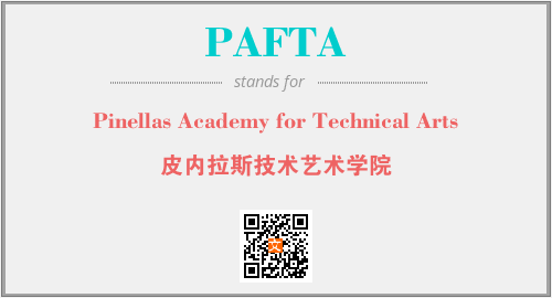 上述内容是“Pinellas Academy for Technical Arts”作为“PAFTA”的缩写,解释为“皮内拉斯技术艺术学院”时的信息,以及英文缩略词PAFTA所代表的英文单词,其对应的中文拼音、详细解释以及在英文中的流行度和相关分类、应用领域及应用示例等。