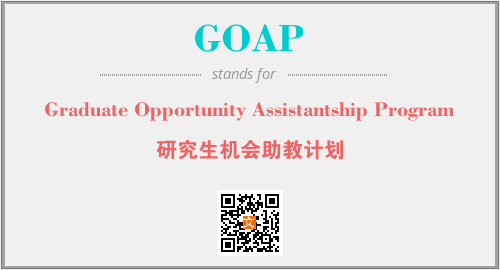 上述内容是“Graduate Opportunity Assistantship Program”作为“GOAP”的缩写,解释为“研究生机会助教计划”时的信息,以及英文缩略词GOAP所代表的英文单词,其对应的中文拼音、详细解释以及在英文中的流行度和相关分类、应用领域及应用示例等。