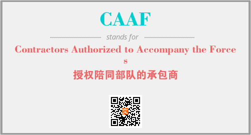 英文缩略词“CAAF”经常作为“Contractors Authorized to Accompany the Forces”的英文缩写来使用,中文表示:“授权陪同部队的承包商”。本文将详细介绍英文缩写词CAAF所代表英文单词,其对应的中文拼音、详细解释以及在英语中的流行度。此外,还有关于缩略词CAAF的分类、应用领域及相关应用示例等。