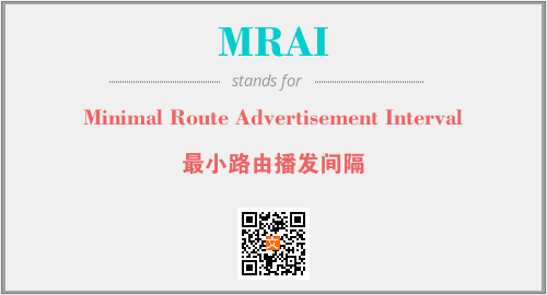 上述内容是“Minimal Route Advertisement Interval”作为“MRAI”的缩写,解释为“最小路由播发间隔”时的信息,以及英文缩略词MRAI所代表的英文单词,其对应的中文拼音、详细解释以及在英文中的流行度和相关分类、应用领域及应用示例等。
