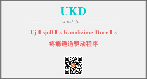 上述内容是“Ujësjellës Kanalizime Durrës”作为“UKD”的缩写,解释为“疼痛通道驱动程序”时的信息,以及英文缩略词UKD所代表的英文单词,其对应的中文拼音、详细解释以及在英文中的流行度和相关分类、应用领域及应用示例等。
