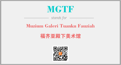 上述内容是“Muzium Galeri Tuanku Fauziah”作为“MGTF”的缩写,解释为“福齐亚殿下美术馆”时的信息,以及英文缩略词MGTF所代表的英文单词,其对应的中文拼音、详细解释以及在英文中的流行度和相关分类、应用领域及应用示例等。