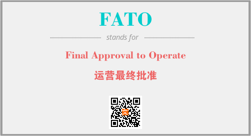 上述内容是“Final Approval to Operate”作为“FATO”的缩写,解释为“运营最终批准”时的信息,以及英文缩略词FATO所代表的英文单词,其对应的中文拼音、详细解释以及在英文中的流行度和相关分类、应用领域及应用示例等。