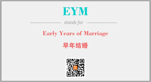 上述内容是“Early Years of Marriage”作为“EYM”的缩写,解释为“早年结婚”时的信息,以及英文缩略词EYM所代表的英文单词,其对应的中文拼音、详细解释以及在英文中的流行度和相关分类、应用领域及应用示例等。