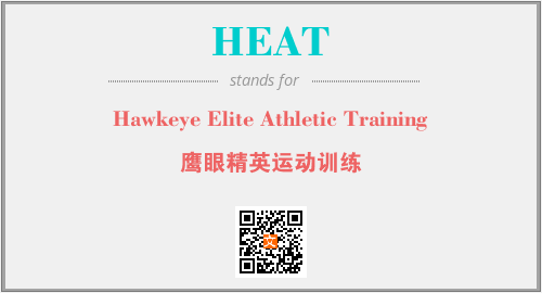 上述内容是“Hawkeye Elite Athletic Training”作为“HEAT”的缩写,解释为“鹰眼精英运动训练”时的信息,以及英文缩略词HEAT所代表的英文单词,其对应的中文拼音、详细解释以及在英文中的流行度和相关分类、应用领域及应用示例等。