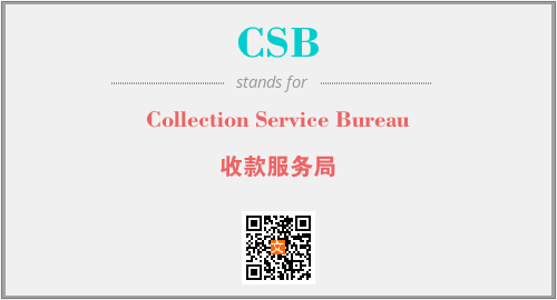 英文缩略词“CSB”经常作为“Collection Service Bureau”的英文缩写来使用,中文表示:“收款服务局”。本文将详细介绍英文缩写词CSB所代表英文单词,其对应的中文拼音、详细解释以及在英语中的流行度。此外,还有关于缩略词CSB的分类、应用领域及相关应用示例等。