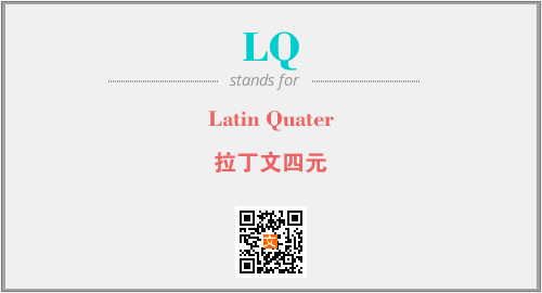 上述内容是“Latin Quater”作为“LQ”的缩写,解释为“拉丁文四元”时的信息,以及英文缩略词LQ所代表的英文单词,其对应的中文拼音、详细解释以及在英文中的流行度和相关分类、应用领域及应用示例等。