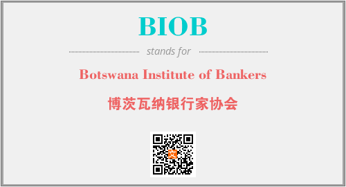 英文缩略词“BIOB”经常作为“Botswana Institute of Bankers”的英文缩写来使用,中文表示:“博茨瓦纳银行家协会”。本文将详细介绍英文缩写词BIOB所代表英文单词,其对应的中文拼音、详细解释以及在英语中的流行度。此外,还有关于缩略词BIOB的分类、应用领域及相关应用示例等。