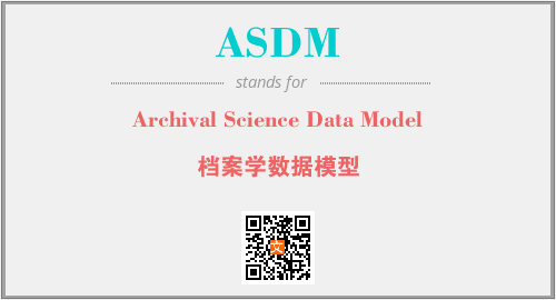 英文缩略词“ASDM”经常作为“Archival Science Data Model”的英文缩写来使用,中文表示:“档案学数据模型”。本文将详细介绍英文缩写词ASDM所代表英文单词,其对应的中文拼音、详细解释以及在英语中的流行度。此外,还有关于缩略词ASDM的分类、应用领域及相关应用示例等。