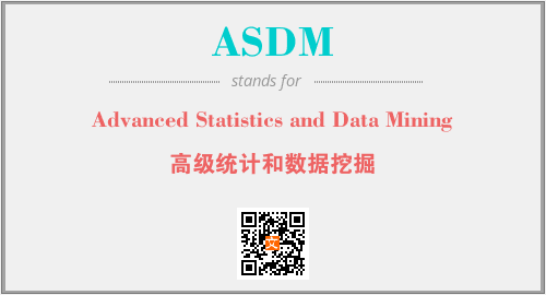 上述内容是“Advanced Statistics and Data Mining”作为“ASDM”的缩写,解释为“高级统计和数据挖掘”时的信息,以及英文缩略词ASDM所代表的英文单词,其对应的中文拼音、详细解释以及在英文中的流行度和相关分类、应用领域及应用示例等。