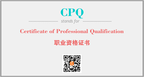 上述内容是“Certificate of Professional Qualification”作为“CPQ”的缩写,解释为“职业资格证书”时的信息,以及英文缩略词CPQ所代表的英文单词,其对应的中文拼音、详细解释以及在英文中的流行度和相关分类、应用领域及应用示例等。