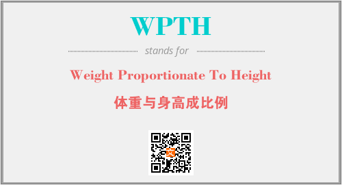 以上为Weight Proportionate To Height英文缩略词WPTH的中文解释,以及该英文缩写在英语的流行度、分类和应用领域方面的信息。