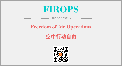 英文缩略词“FIROPS”经常作为“Freedom of Air Operations”的英文缩写来使用,中文表示:“空中行动自由”。本文将详细介绍英文缩写词FIROPS所代表英文单词,其对应的中文拼音、详细解释以及在英语中的流行度。此外,还有关于缩略词FIROPS的分类、应用领域及相关应用示例等。