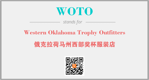 上述内容是“Western Oklahoma Trophy Outfitters”作为“WOTO”的缩写,解释为“俄克拉荷马州西部奖杯服装店”时的信息,以及英文缩略词WOTO所代表的英文单词,其对应的中文拼音、详细解释以及在英文中的流行度和相关分类、应用领域及应用示例等。