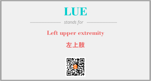上述内容是“Left upper extremity”作为“LUE”的缩写,解释为“左上肢”时的信息,以及英文缩略词LUE所代表的英文单词,其对应的中文拼音、详细解释以及在英文中的流行度和相关分类、应用领域及应用示例等。