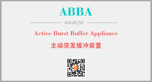 上述内容是“Active Burst Buffer Appliance”作为“ABBA”的缩写,解释为“主动突发缓冲装置”时的信息,以及英文缩略词ABBA所代表的英文单词,其对应的中文拼音、详细解释以及在英文中的流行度和相关分类、应用领域及应用示例等。